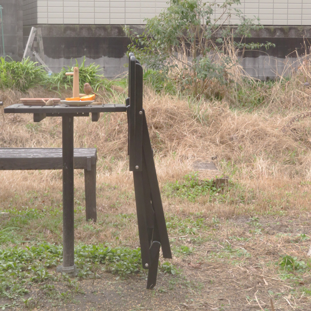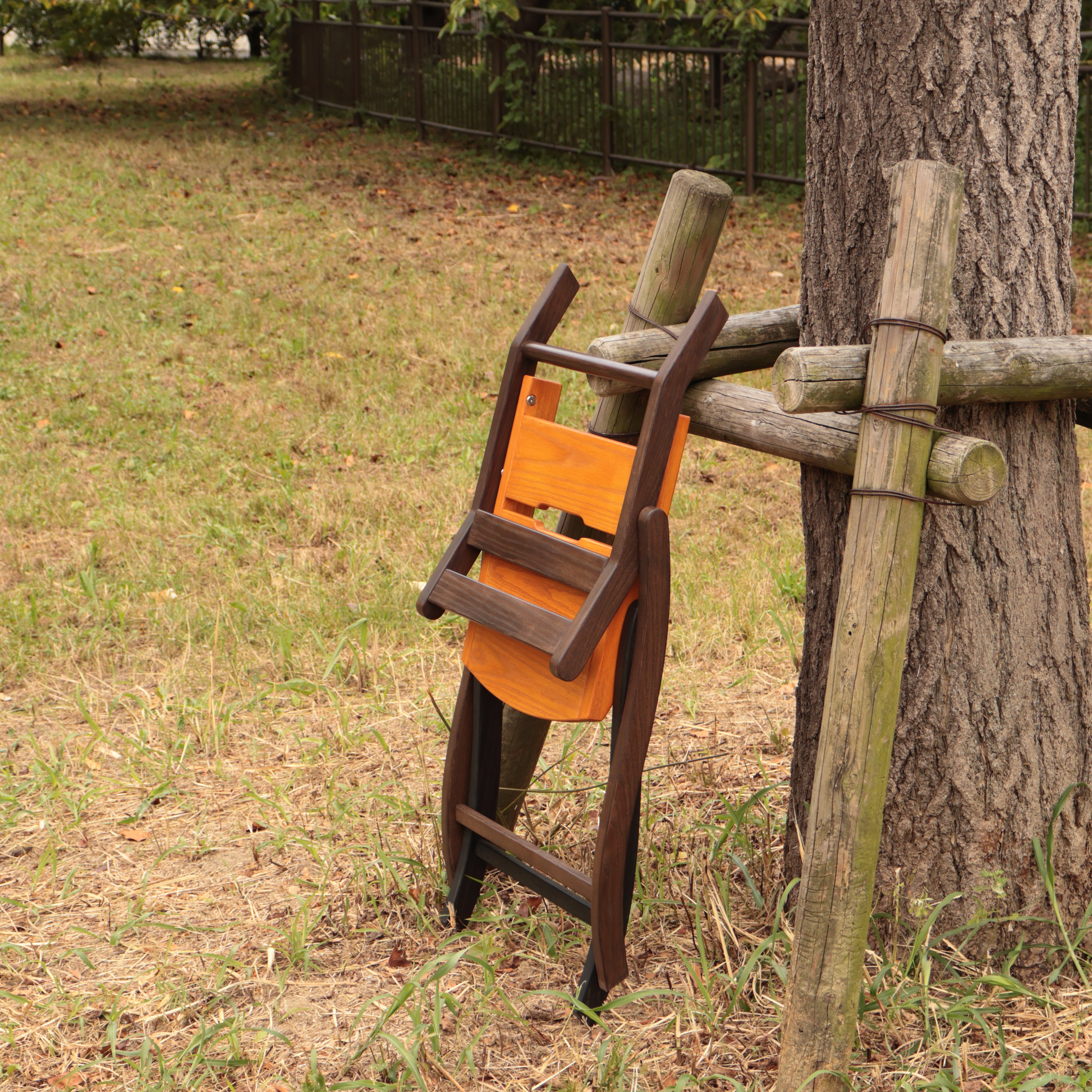 屋外の使用を想定した折り畳み式のチェア、もちろん屋内でも使用可能です。