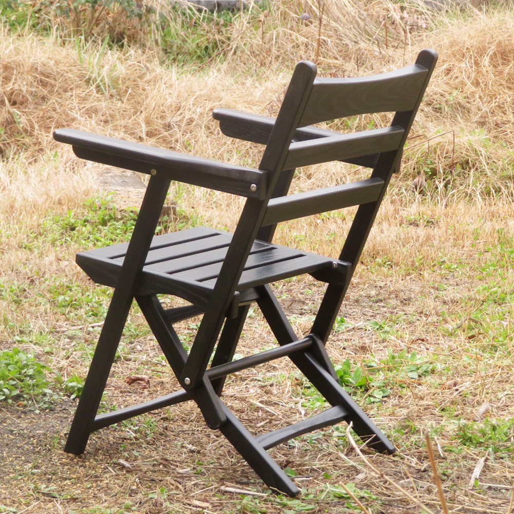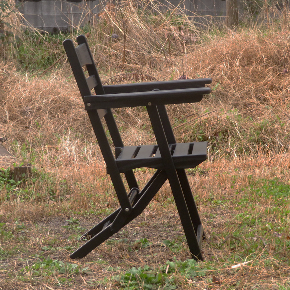 屋外の使用を考えた折りたたみ式のアームチェアです。もちろん屋内でも使用可能です。